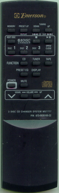 The RT402030330408 is a custom-built replacement remote control to the original EMERSON MS7775. It will perform all the functions that the original EMERSON remote did and only uses a different shell.
