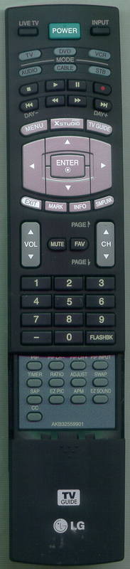 The RTAKB32559901 is a custom-built replacement remote control to the original LG AKB32559901. It will perform all the functions that the original LG remote did and only uses a different shell.