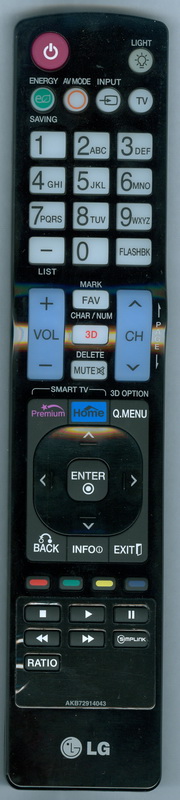 The RTAKB72914043 is a custom-built replacement remote control to the original LG AKB72914043. It will perform all the functions that the original LG remote did and only uses a different shell.