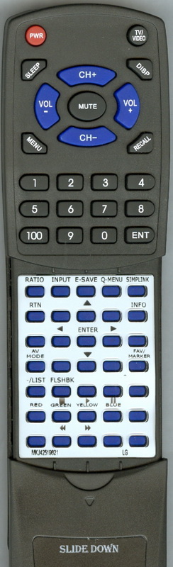 The RTMKJ42519621 is a custom-built replacement remote control to the original LG MKJ42519621. It will perform all the functions that the original LG remote did and only uses a different shell.