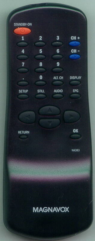 The RTNA383UD is a custom-built replacement remote control to the original MAGNAVOX TB100MW9A. It will perform all the functions that the original MAGNAVOX remote did and only uses a different shell.