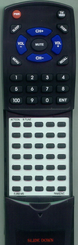 The RTEUR501450 is a custom-built replacement remote control to the original PANASONIC CT27G7SDF. It will perform all the functions that the original PANASONIC remote did and only uses a different shell.