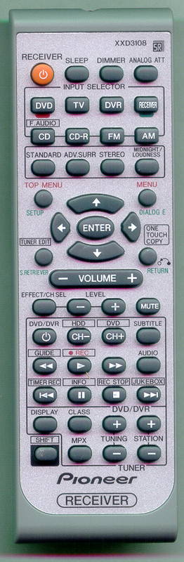 The RTXXD3108 is a custom-built replacement remote control to the original PIONEER SX217K. It will perform all the functions that the original PIONEER remote did and only uses a different shell.