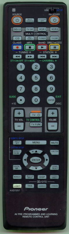 The RTAXD7257 is a custom-built replacement remote control to the original PIONEER VSX-37TX. It will perform all the functions that the original PIONEER remote did and only uses a different shell.