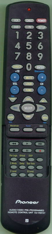 The RTAXD7209 is a custom-built replacement remote control to the original PIONEER VSX557. It will perform all the functions that the original PIONEER remote did and only uses a different shell.