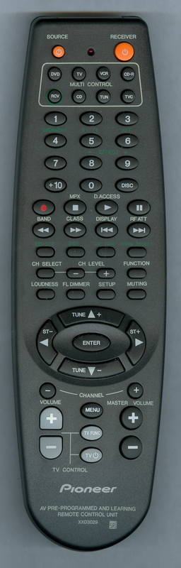 The RTXXD3029 is a custom-built replacement remote control to the original PIONEER VSX709RDS. It will perform all the functions that the original PIONEER remote did and only uses a different shell.