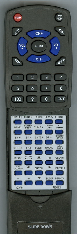 The RTAXD7381 is a custom-built replacement remote control to the original PIONEER VSX9100TX. It will perform all the functions that the original PIONEER remote did and only uses a different shell.