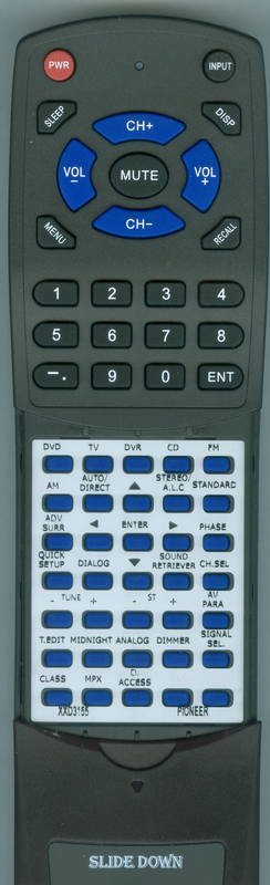 The RTXXD3155 is a custom-built replacement remote control to the original PIONEER XXD3155. It will perform all the functions that the original PIONEER remote did and only uses a different shell.