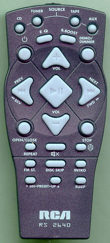 The RT267108 is a custom-built replacement remote control to the original RCA RS2640. It will perform all the functions that the original RCA remote did and only uses a different shell.