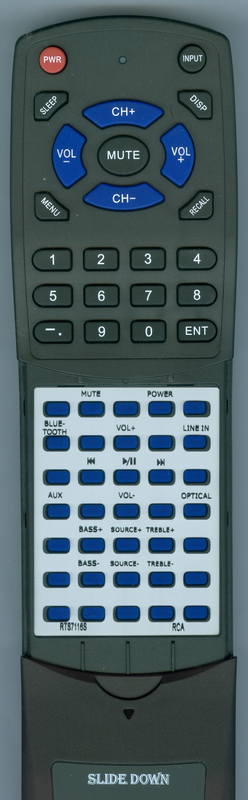 The RTRTS7116S is a custom-built replacement remote to the original RCA- S7116S. It will perform all the functions that the original RCA- remote did and only uses a different shell.