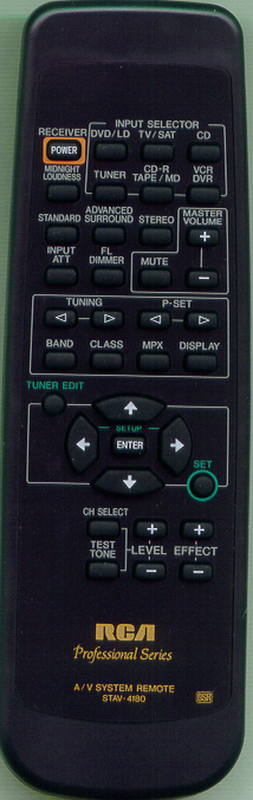 The RT12407987 is a custom-built replacement remote control to the original RCA STAV-4180. It will perform all the functions that the original RCA remote did and only uses a different shell.