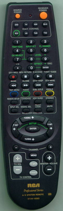 The RT12386959 is a custom-built replacement remote control to the original RCA STAV4090. It will perform all the functions that the original RCA remote did and only uses a different shell.