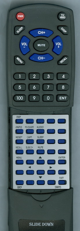 The RTGXCF is a custom-built replacement remote control to the original SANYO DP19640. It will perform all the functions that the original SANYO remote did and only uses a different shell.
