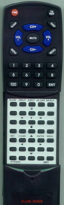 The RT6711R1N074C is a custom-built replacement remote control to the original SANYO VWM800. It will perform all the functions that the original SANYO remote did and only uses a different shell.
