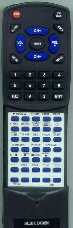 The RTU0070052U is a custom-built replacement remote control to the original AIWA RTU0070052U. It will perform all the functions that the original AIWA remote did and only uses a different shell.