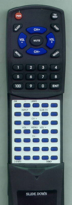 The RTC1310ATV is a custom-built replacement remote control to the original DISNEY C1310ATV. It will perform all the functions that the original DISNEY remote did and only uses a different shell.
