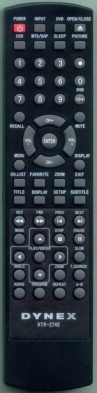 The RTHTR274E is a custom-built replacement remote control to the original DYNEX TV-5620-82. It will perform all the functions that the original DYNEX remote did and only uses a different shell.