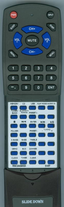 The RTRRMCGA409AWSA is a custom-built replacement remote control to the original SHARP XL-BH250. It will perform all the functions that the original SHARP remote did and only uses a different shell.